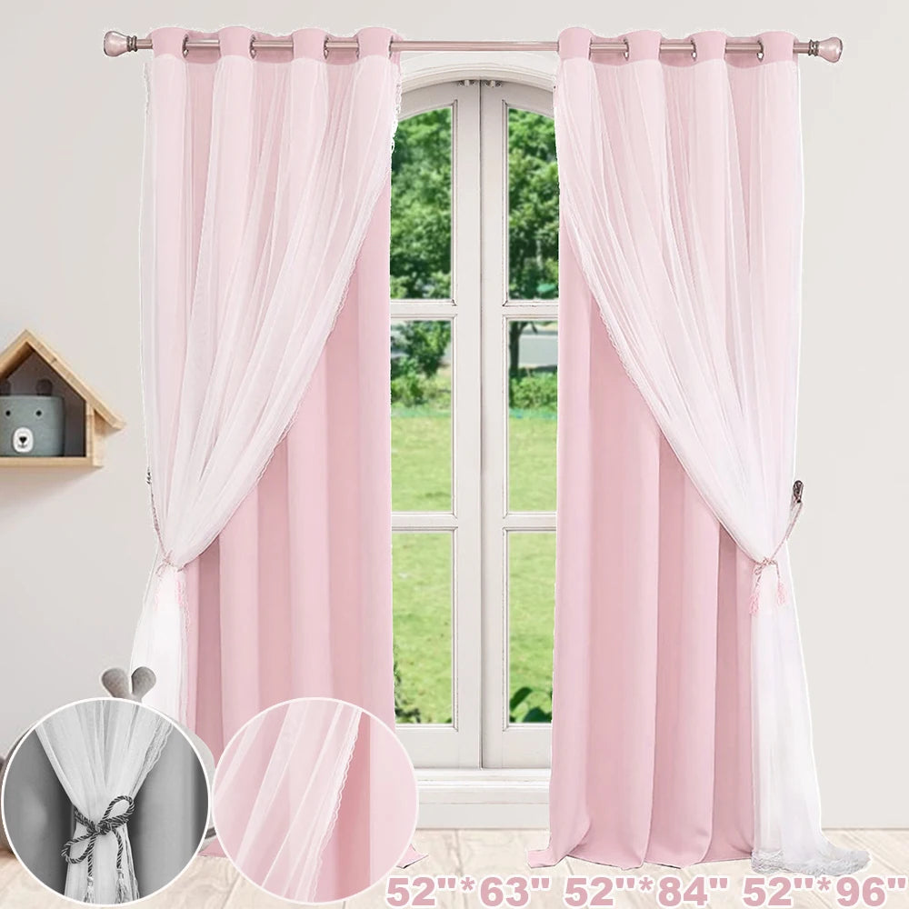 Rideau occultant double épaisseur avec voile princesse pour chambre (1 ou 2 panneaux)